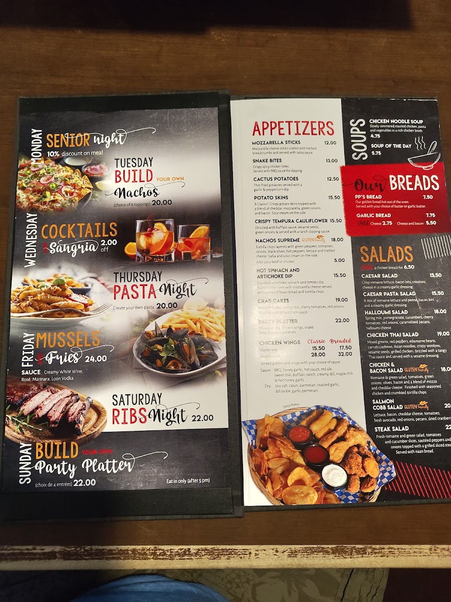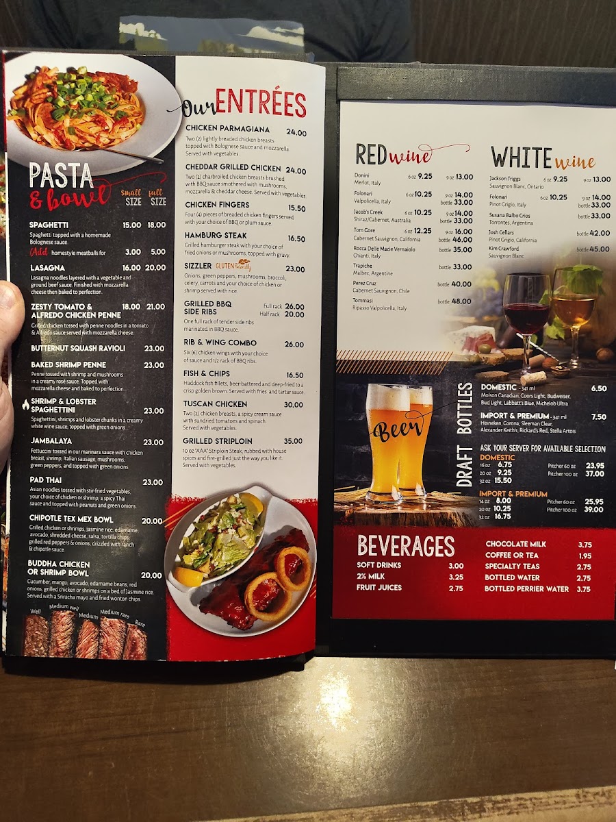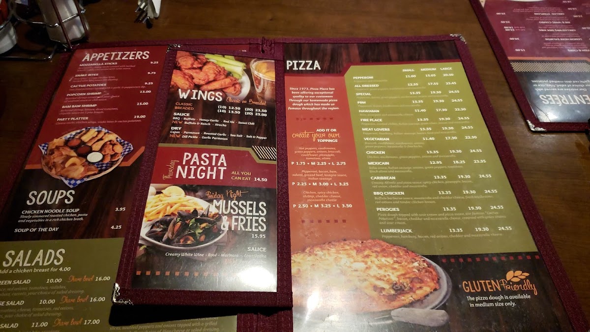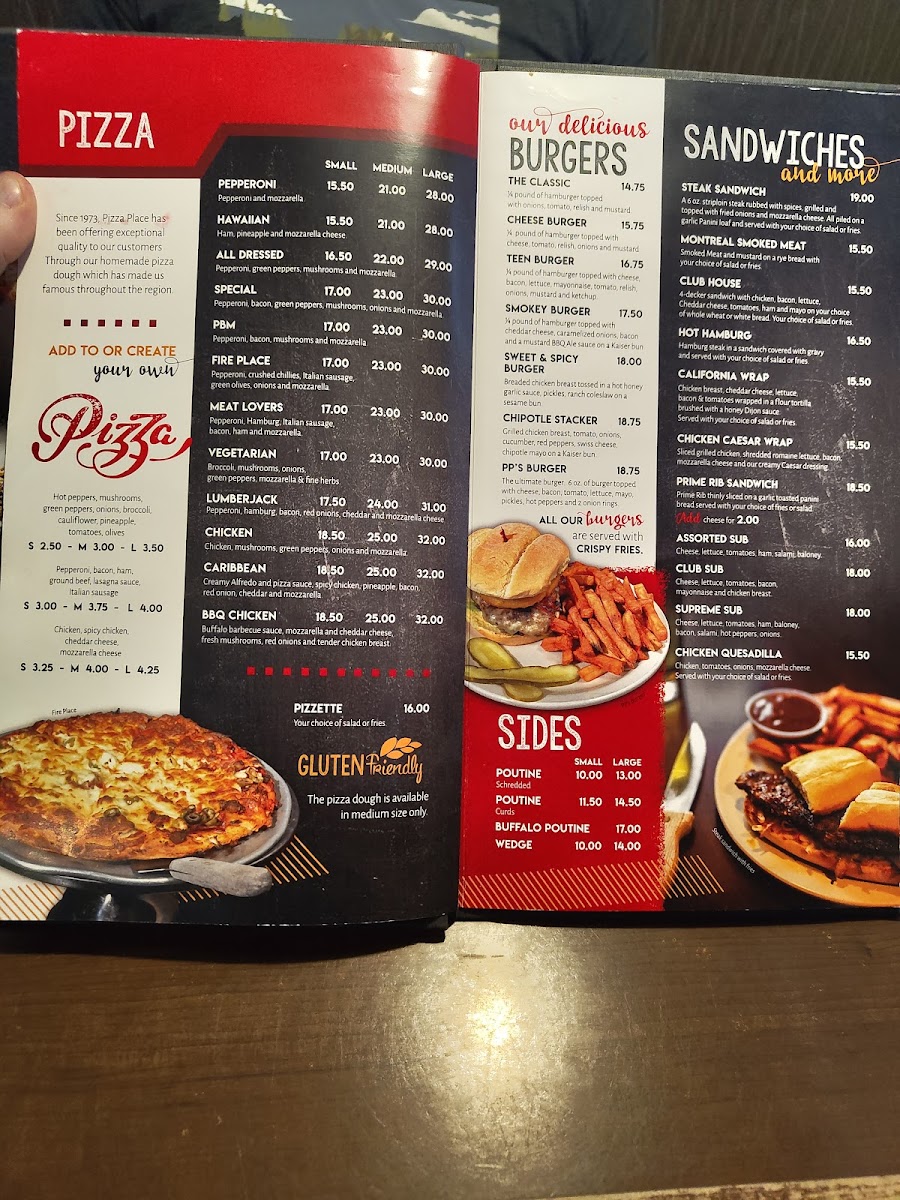 From start to finish, Pizza Place at 1413 Front St, Hearst, ON offers a menu that is both varied and inviting. Appetizers like Tuscan Bruschetta and Buffalo Ranch Shrimp set a flavorful tone, while the pasta selection features the rich and creamy Cappelletti Tettrazzini. For handheld favorites, diners can enjoy the hearty Mr Pickle Burger or a selection of Tacos, complemented by the refreshing Sunshine Tango Salad. Pizza lovers will be drawn to the Chipotle Prime Rib Pizza, a standout choice that balances bold flavors. The drink options are equally diverse, with white wines such as Jackson Triggs, Folonari, Susana Balbo Críos, and Josh Cellars, alongside beverages like Chocolate Milk, Specialty Teas, Bottled Water, and Bottled Perrier Water. For a comforting touch, the menu also offers Chicken Noodle Soup, the Soup Of The Day, and specials including the All Dressed Special and PBM. Overall, the menu presents a well-rounded mix of classic favorites and inventive dishes, making Pizza Place a reliable choice for both casual meals and more indulgent dining experiences.